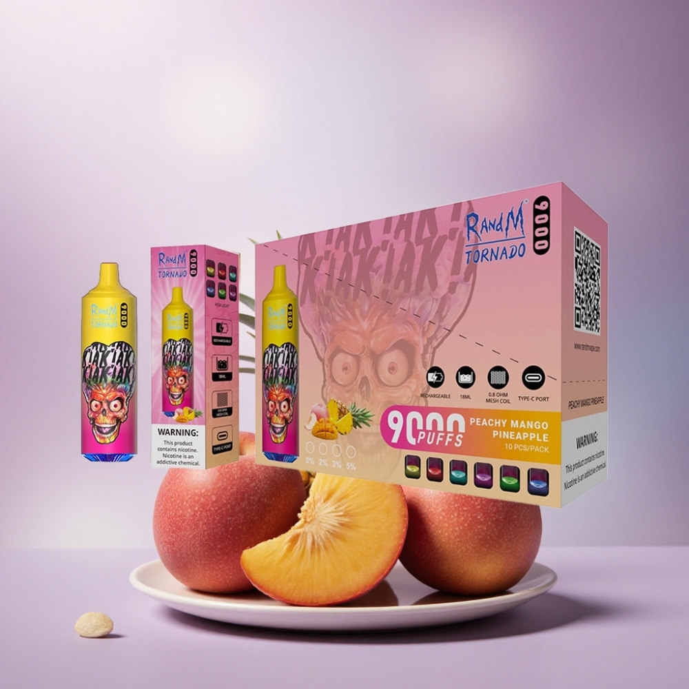 RandM Fumot Tornado 9000 Puffs Manga Pêssego Abacaxi com 18 mL e Bobina Mesh