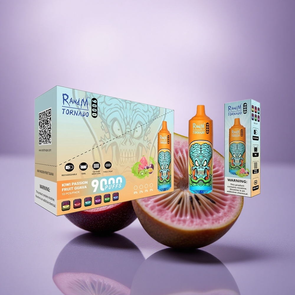 RandM Fumot Tornado 9000 Puffs Maracujá Kiwi Goiaba com Bateria 850 mAh e Coil Mesh